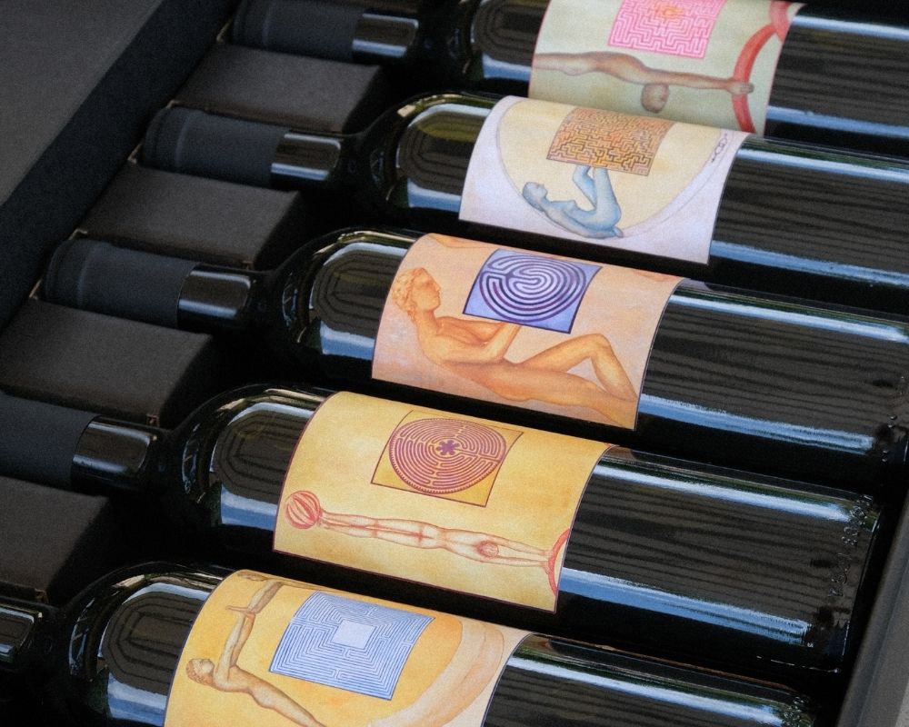 For the BRANCAIA COLLECTION 2025, the artist has reinterpreted her sculptures: dynamic figures in balance, often on circles, as a symbol of harmony and change. At the center of each label is a labyrinth – a symbol of an inner journey that reflects the maturing process of the wine.